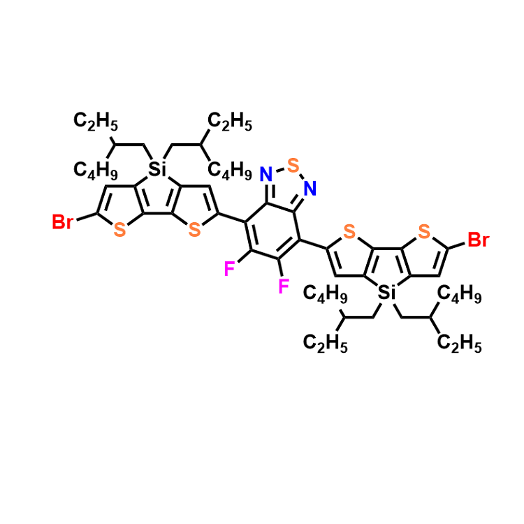 英文名稱:4,7-Bis(6-bromo-4,4-bis(2-ethylhexyl)-4H-silolo[3,2-b:4,5-b']dithiophen-2-yl)-5,6-difluorobenzo[c][1,2,5]thiadiazole